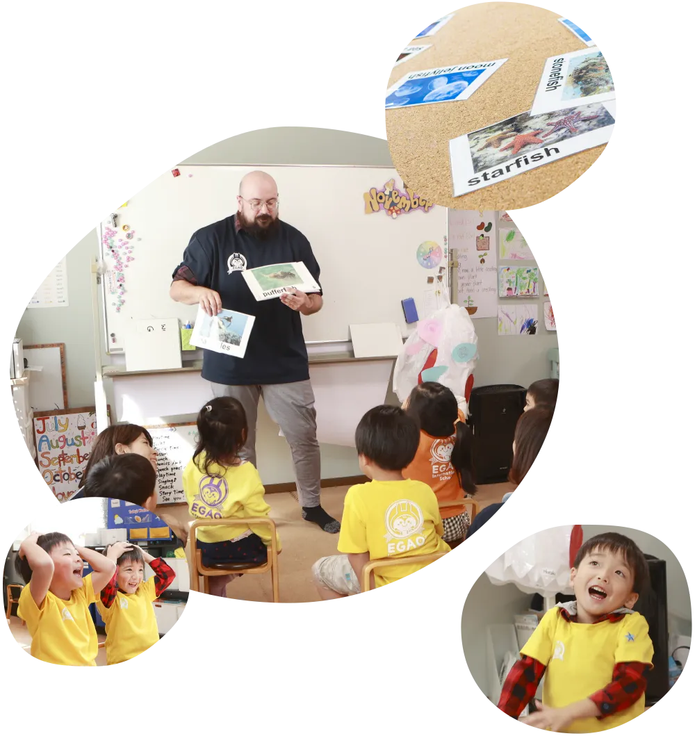 EISに堅苦しいレッスンはありません!1人ひとりの個性に合わせた様々なアクティビティやレッスンを、講師も一緒になって楽しみます。大げさに褒めたり、喜びや達成をみんなでシェアしたり、成功体験を積み上げながら「英語って楽しい!」「もっと話したい!」という気持ちを伸ばして行きます。