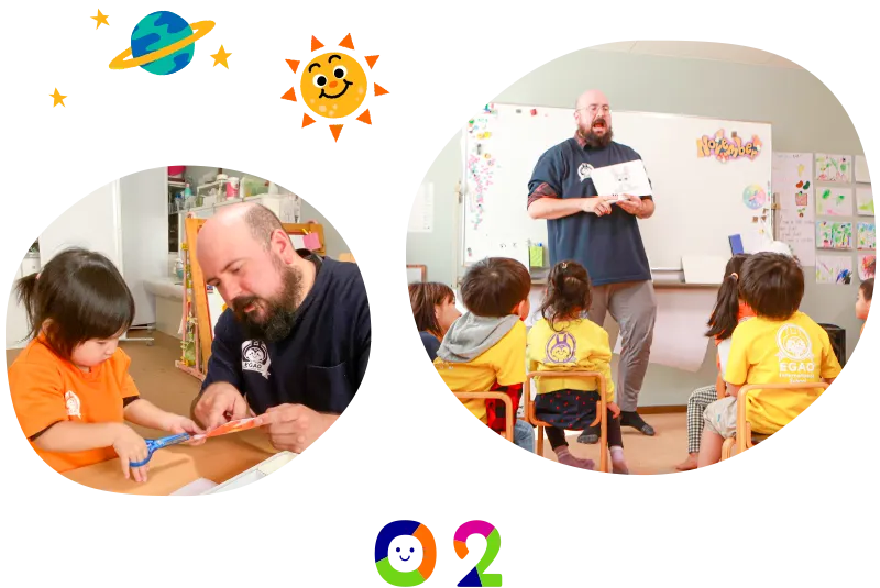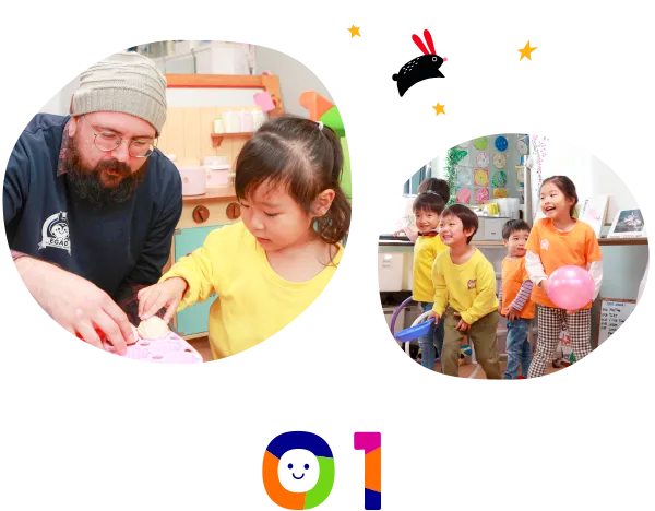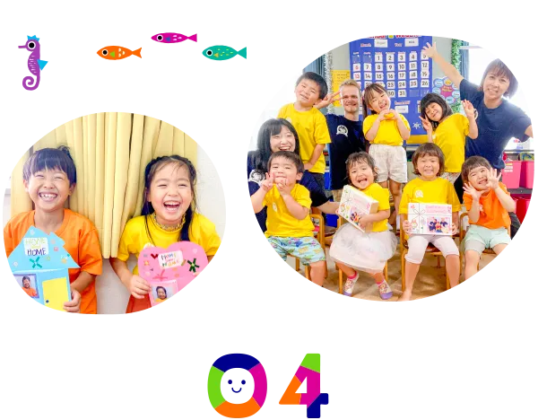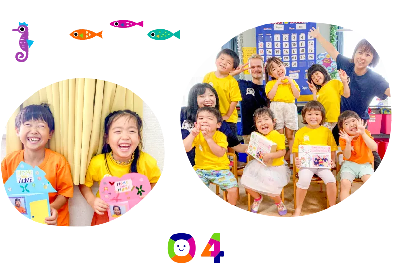 専属保育士監修の元、お友達と一緒に製作に取り組んだり、海外の遊びをしたり、敬老の日・お正月・七夕・節分などの日本のイベントも行います。日本文化を深く理解し、海外との違いを学ぶことで、より”国際人”として成長できると考えています。
