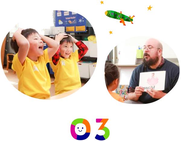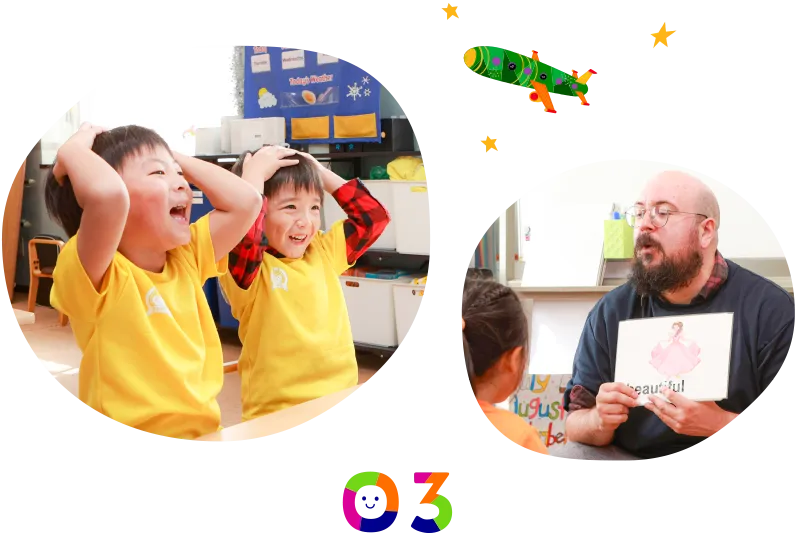 5時間オールイングリッシュの環境で生活します。話すために作られた独自のレッスンに加え、アクティビティも豊富で楽しい工夫がいっぱいです!