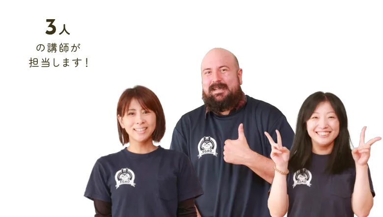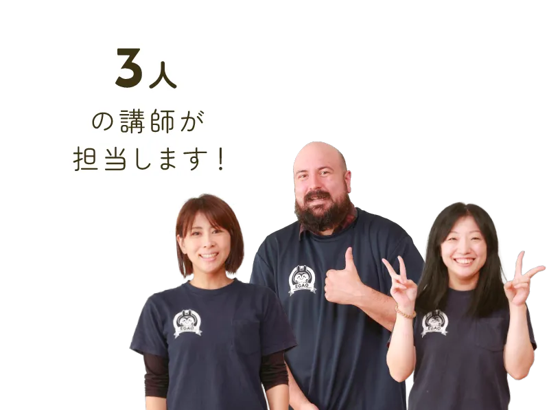 週1日から通えるのでダブルスクールを推奨! 外国人講師、サポート講師、保育士の安心3名体制です。
