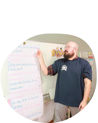 一人ひとりの英語レベルに合った教材を使用し、外国人講師と少人数で口の動きや舌の動きを楽しみながら練習します。また、フォニックスを使用した簡単なゲームをしながら文字を読む練習もします。その後のワークブックでは学んだフォニックスを書くことでさらに深く理解できるようにします。文字を書くことが難しい年齢の子供でも、上手に書けるようになるための鉛筆の持ち方やクレヨンでの色塗り(塗りつぶし)も一緒に学べるようになっています。